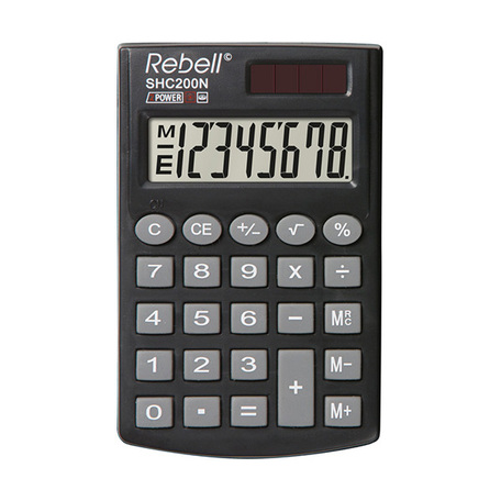 kalkulačka Jednoduchý kapesní kalkulátor Rebell s 8místným Lcd displejem, 3 paměťovými klávesami a ochranným pouzdrem