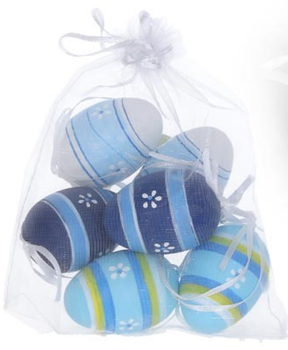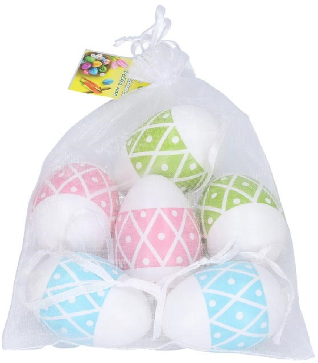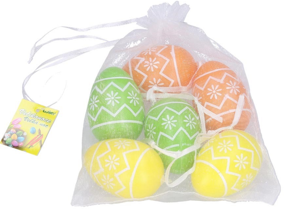 Vajíčko W033821 dekorační plastové malované 6 cm, 6ks v organza sáčku