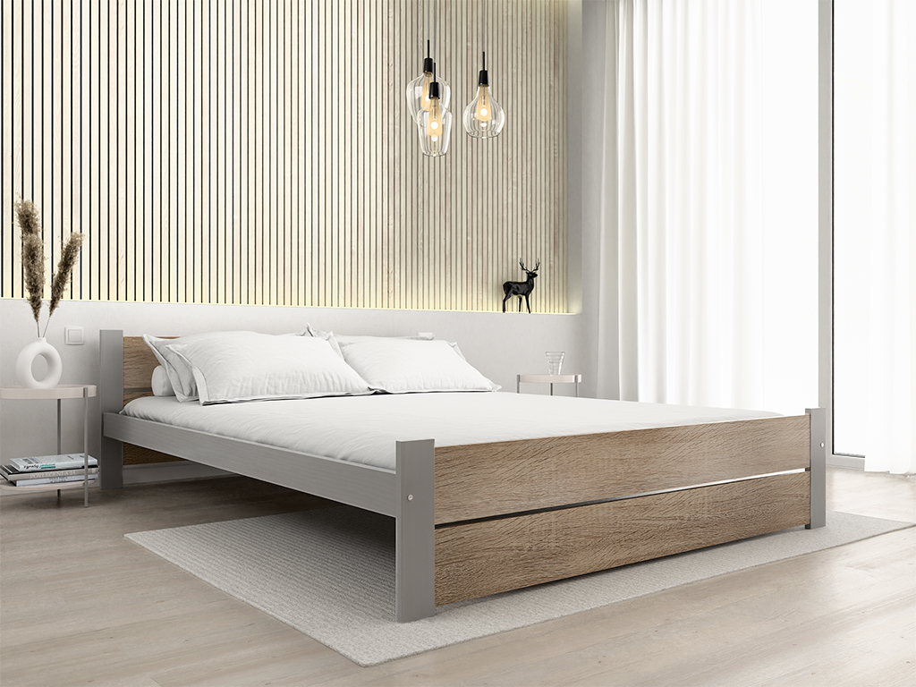 Postel IKAROS DOUBLE 160 x 200 cm, dub sonoma/šedá Rošt: S lamelovým roštem, Matrace: Bez matrace
