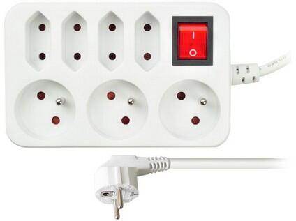 Prodlužovací přívod 6z, 1,5m, 3 x 1mm2, bílý, vypínač b50 - SH-PP70