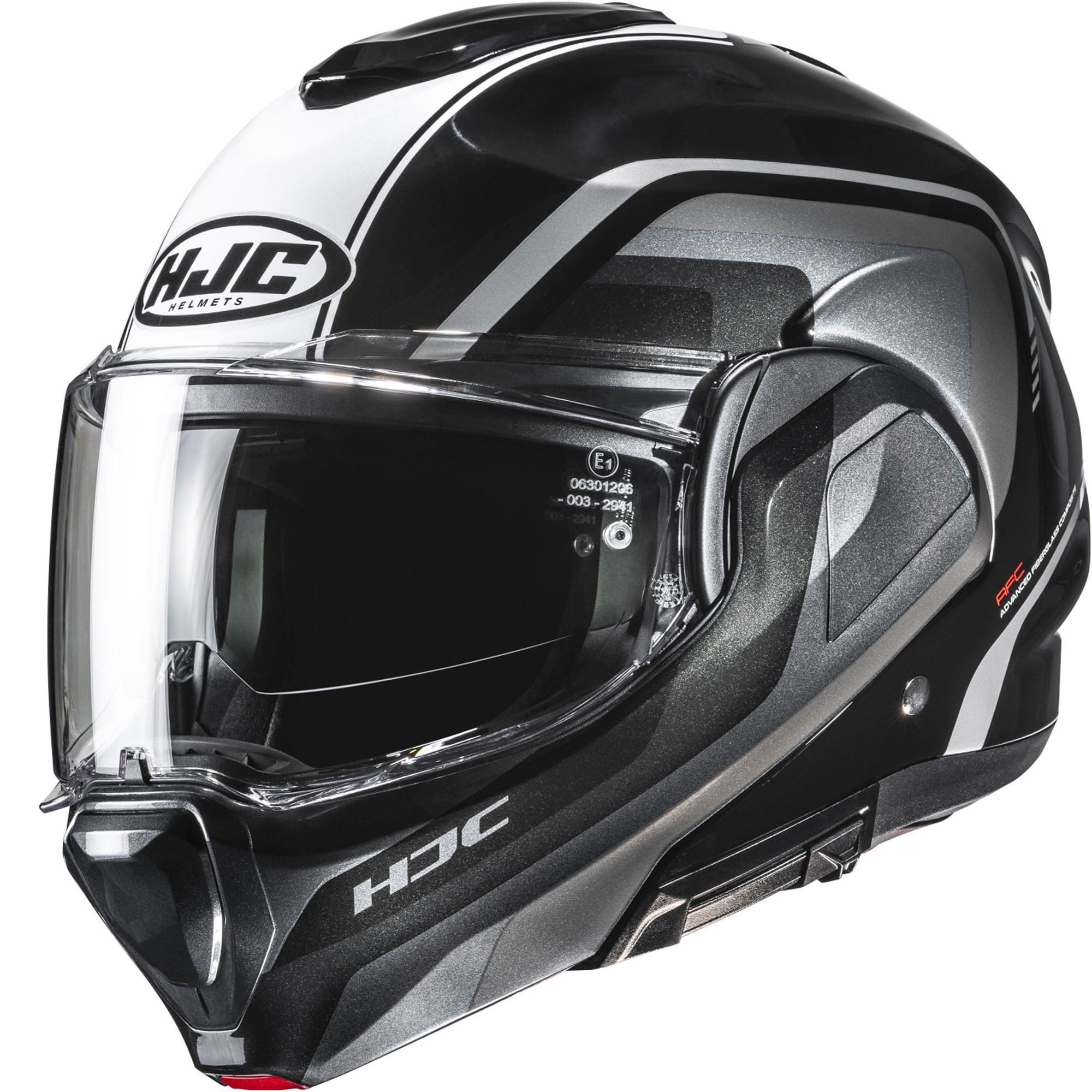 Překlápěcí helma na motorku HJC F100 Reff MC21 černo-stříbrná-bílá Velikost: L