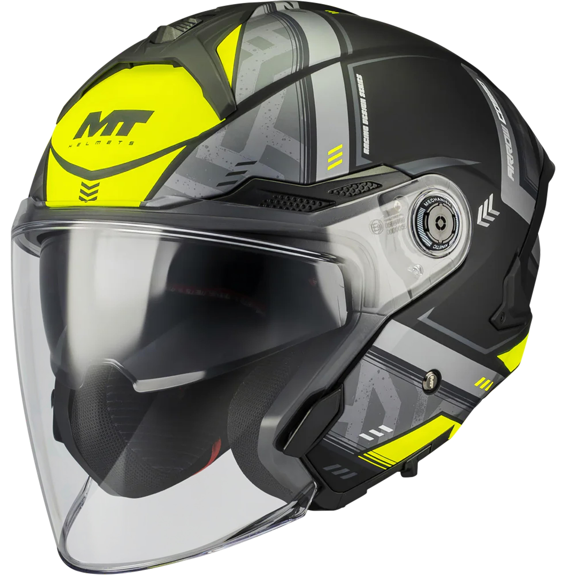Otevřená helma na motorku MT Cosmo SV Arrow B3 matná černo-šedo-fluo žlutá Velikost: L