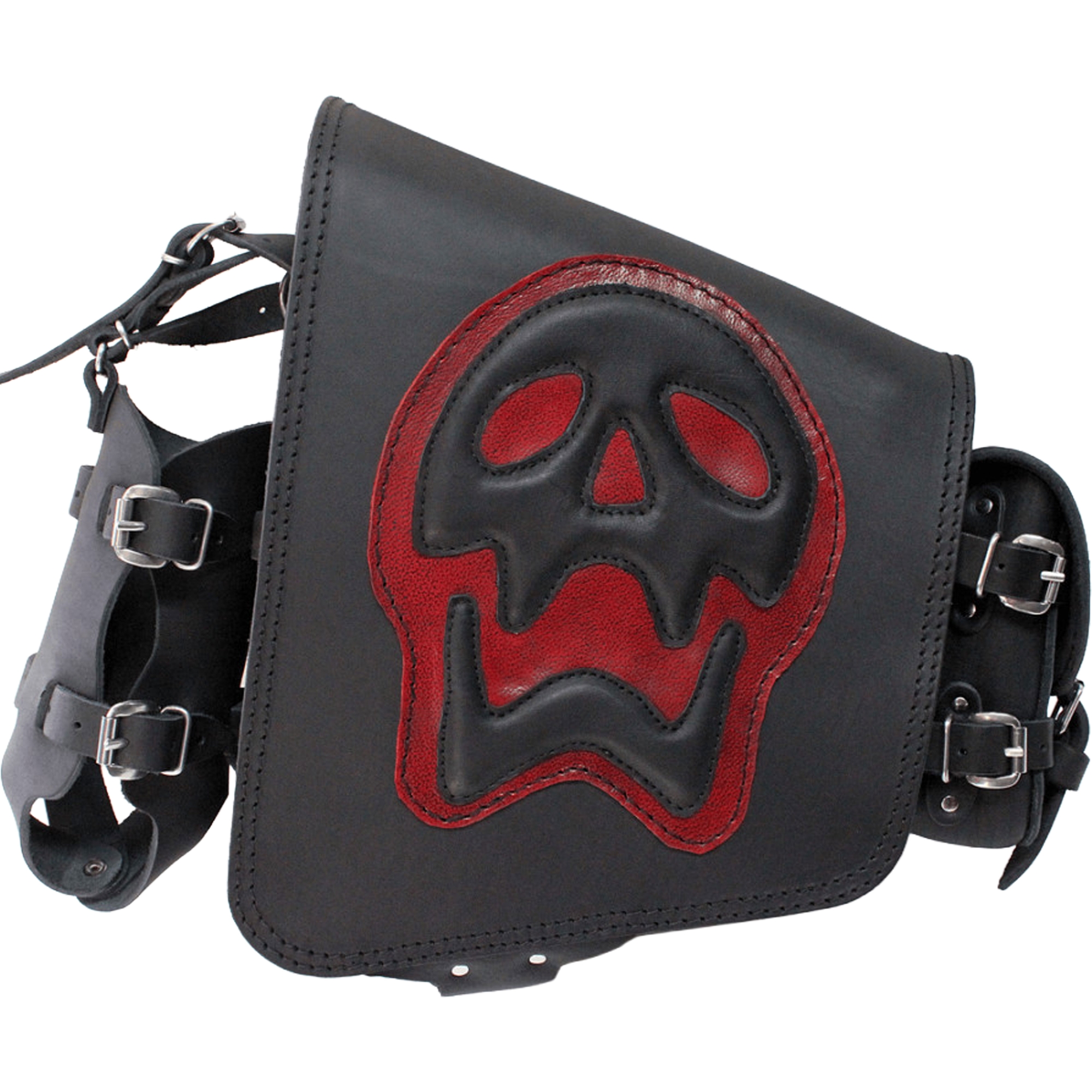 Kožená brašna na motorku RSA S493 Skull H-D Softail černo-červená