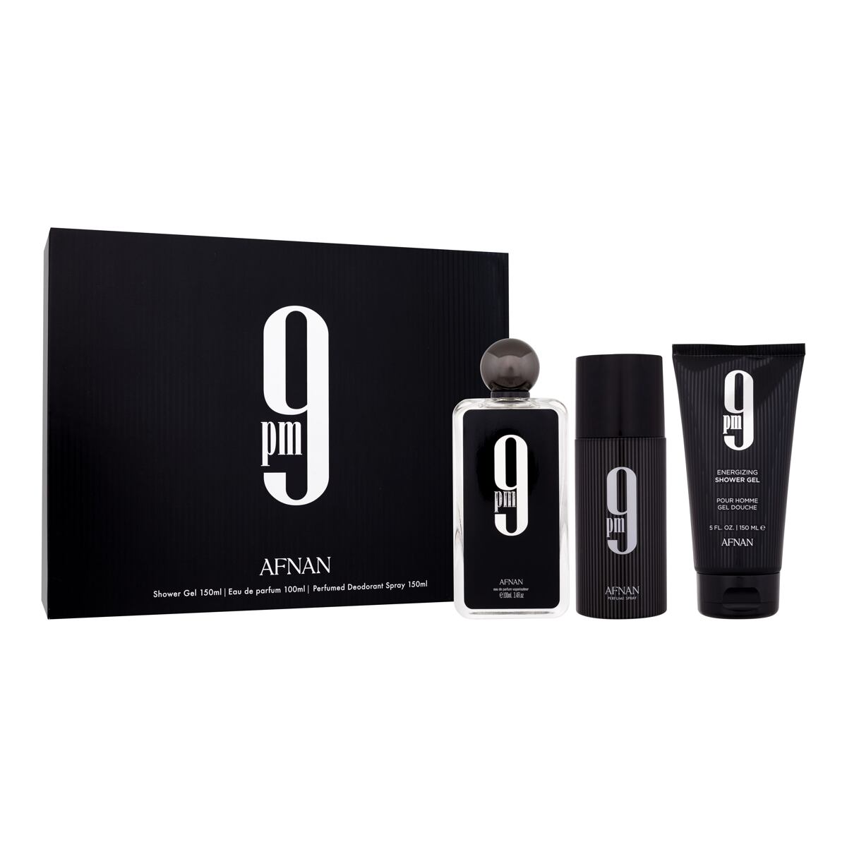 Afnan 9pm dárková sada: EDP 100 ml + sprchový gel 150 ml + deodorant 150 ml pro muže