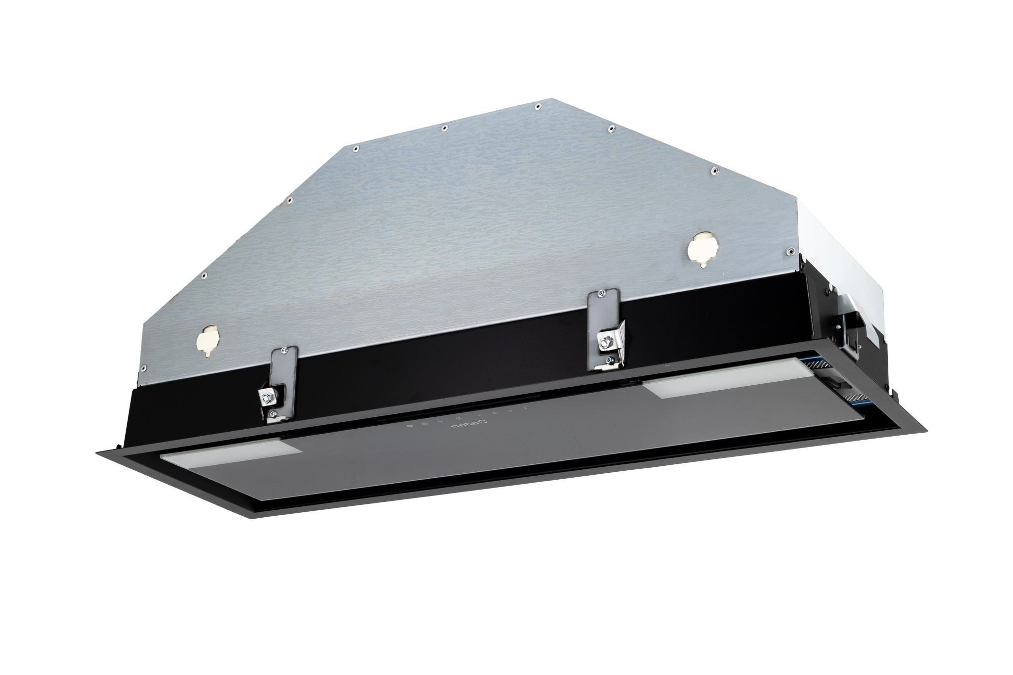 Neviditelná vestavná digestoř, 750 mm (pro 900 mm skříňku), nerez / černé sklo, přehledné a snadno…