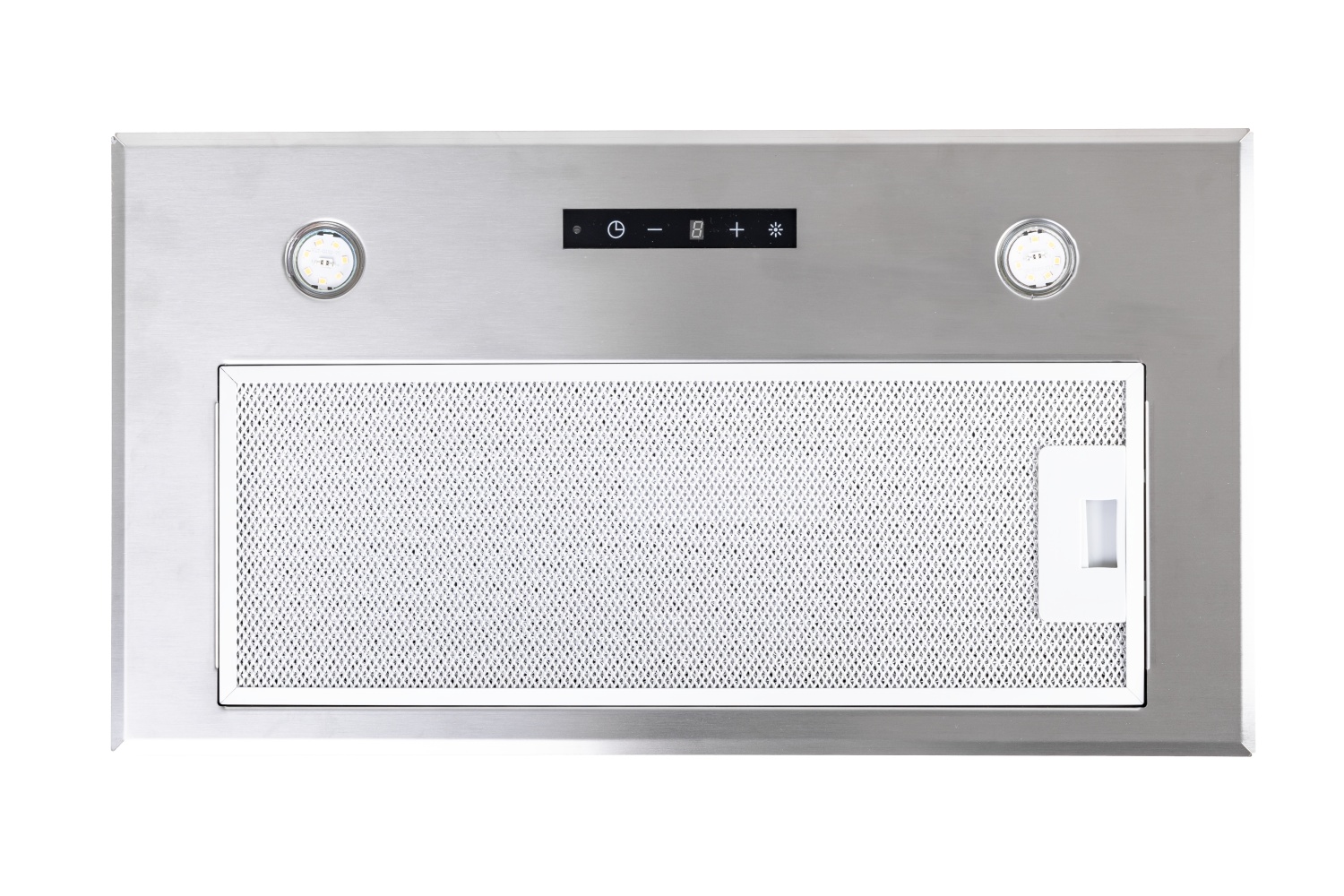 Vestavná digestoř, šíře 60 cm, nerez, max. výkon 822 m3/h (5 Pa), hlučnost Lw 51 – 69 dB(A), 3…