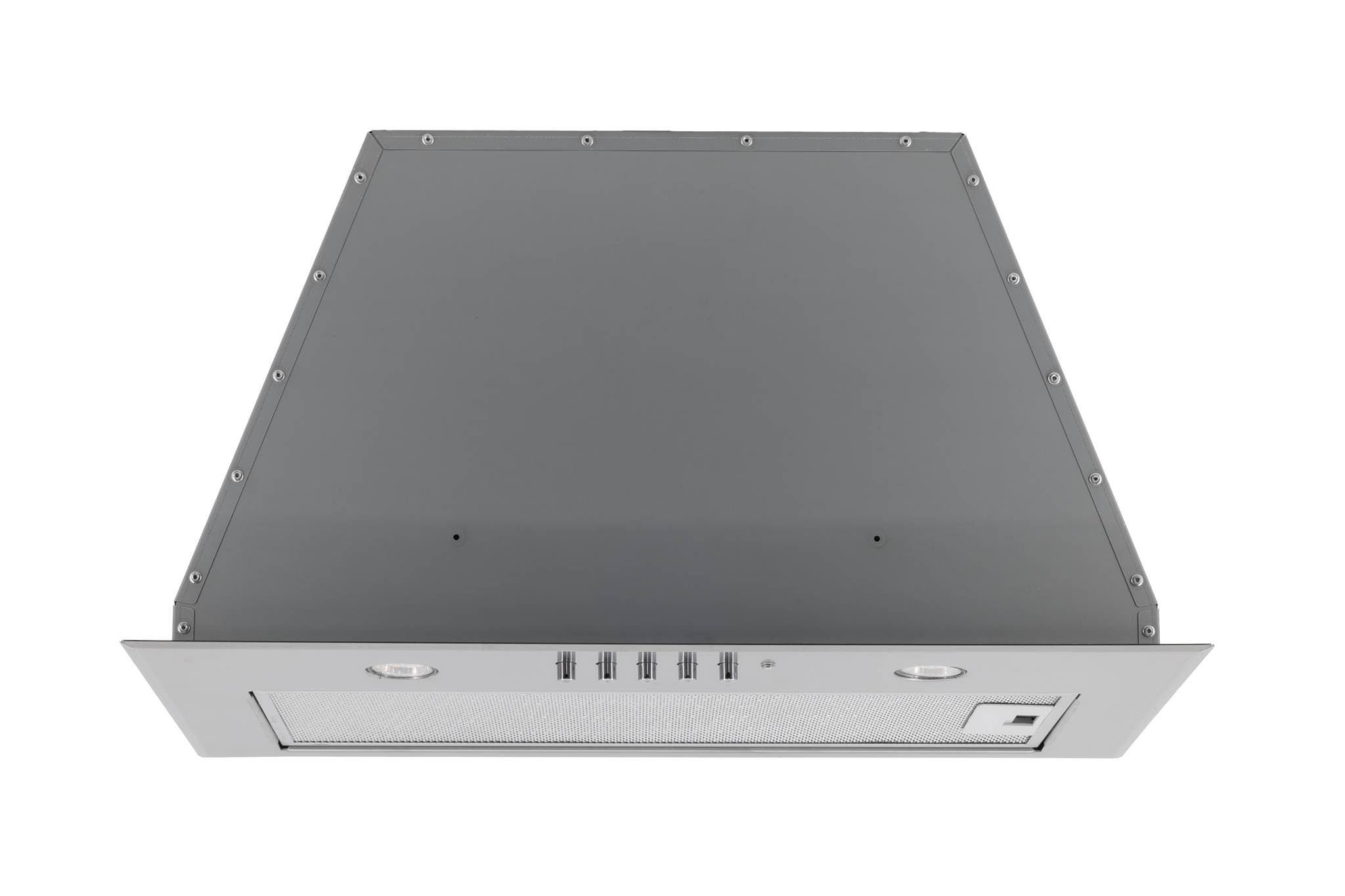 Vestavná digestoř, šíře 60 cm, nerez, max. výkon 405 m3/h (5 Pa), hlučnost Lw 51 – 61 dB(A), 3…