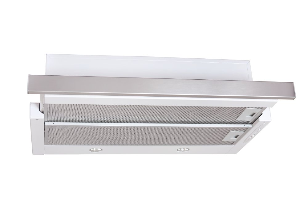 Vestavná digestoř výsuvná, šíře 60 cm, bílá s nerez lištou, max. výkon 338 m3/h (15 Pa), hlučnost…